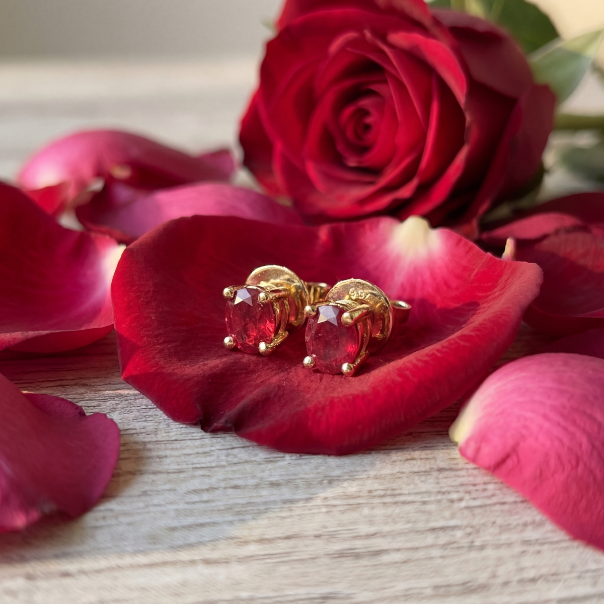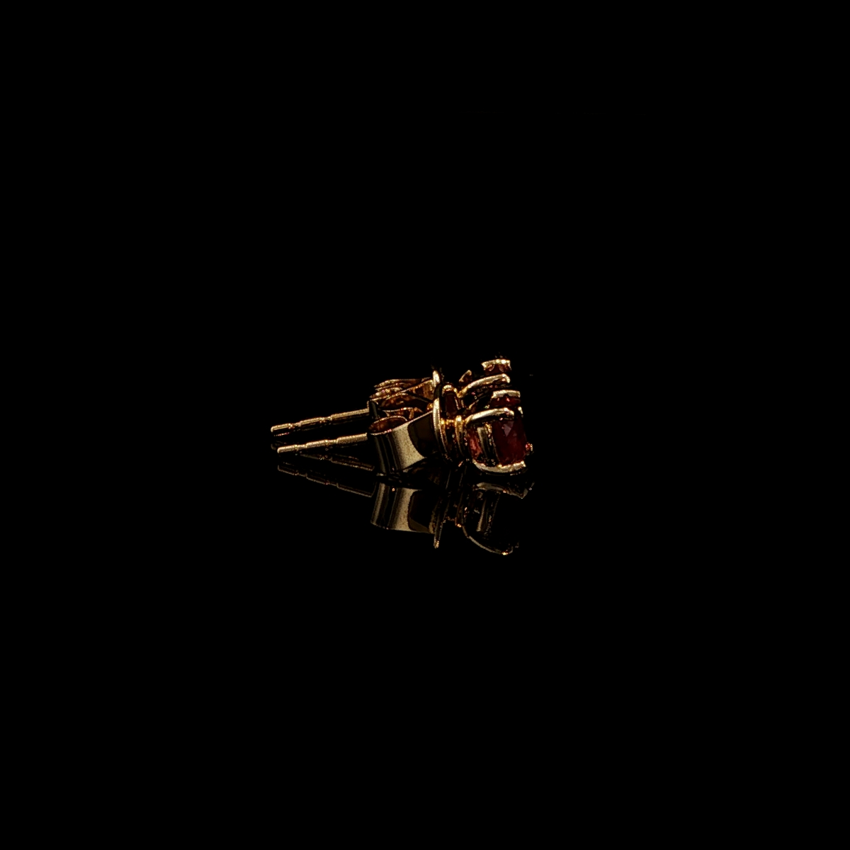 These beautiful stud earrings feature fine oval cut, super-rare American red beryl gems set in 18KT yellow gold with tension backs. Versatile and unique, make them part of your everyday wear or a night out on the town!!